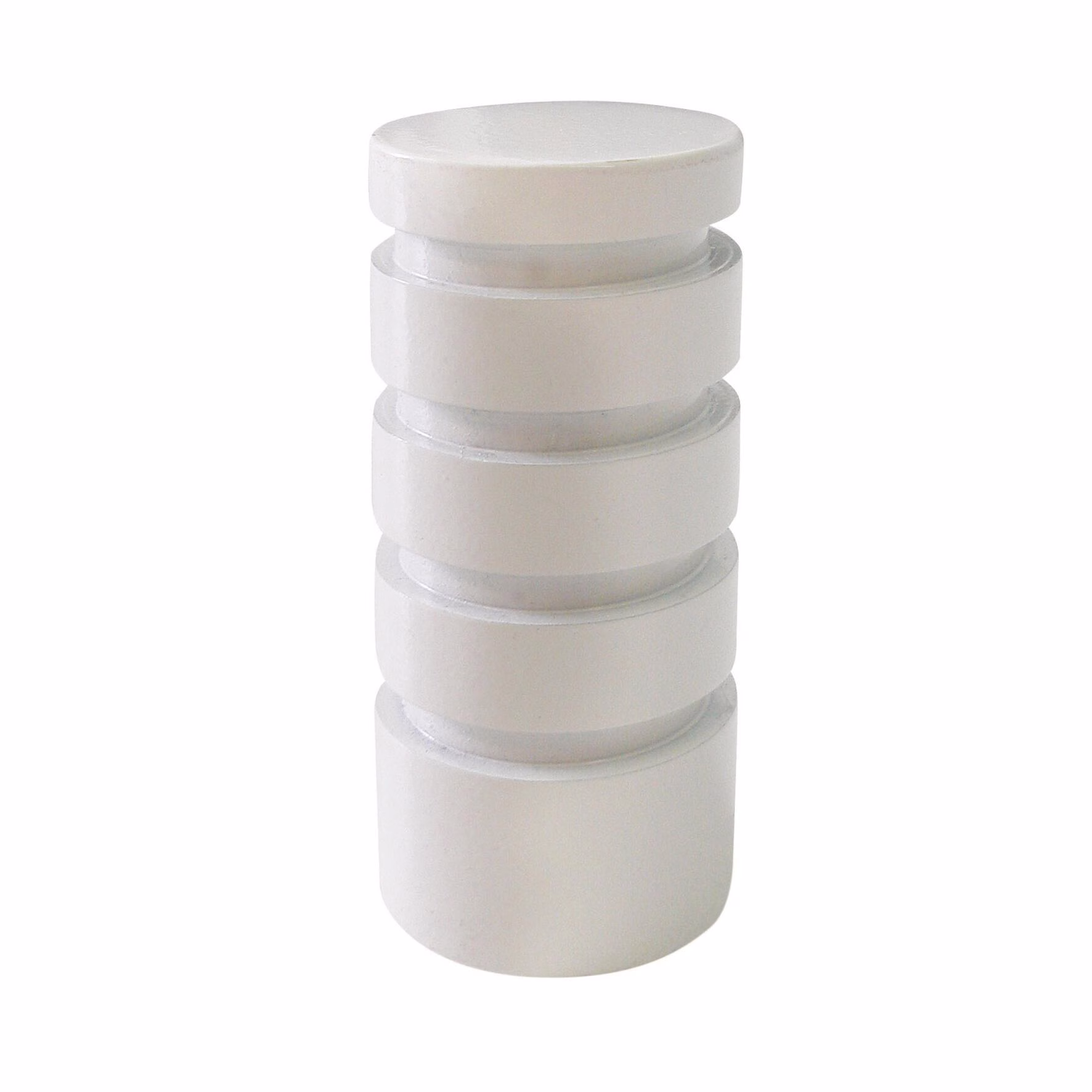 Σετ δύο διακοσμητικών άκρων κουρτινόξυλου σε κυλινδρικό σχήμα, σε λευκό χρώμα. Διατίθεται για κουρτινόξυλο φ.25 και φ.28. Οδηγίες Πλυσίματος: Σύνθεση: 100% ΜΕΤΑΛΛΟ.. Χώρα Προέλευσης: Κίνα