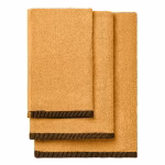 Φτιαγμένες από ύφασμα υψηλής ποιότητας 450gsm, οι πετσέτες προσφέρουν εξαιρετική απορροφητικότητα και μοναδική απαλότητα στην αφή. Το μονόχρωμο σχέδιο τους, διακοσμημένο με διακριτικό μαύρο φυτιλάκι, δίνει μια πινελιά κομψότητας που ταιριάζει σε κάθε στυλ μπάνιου.