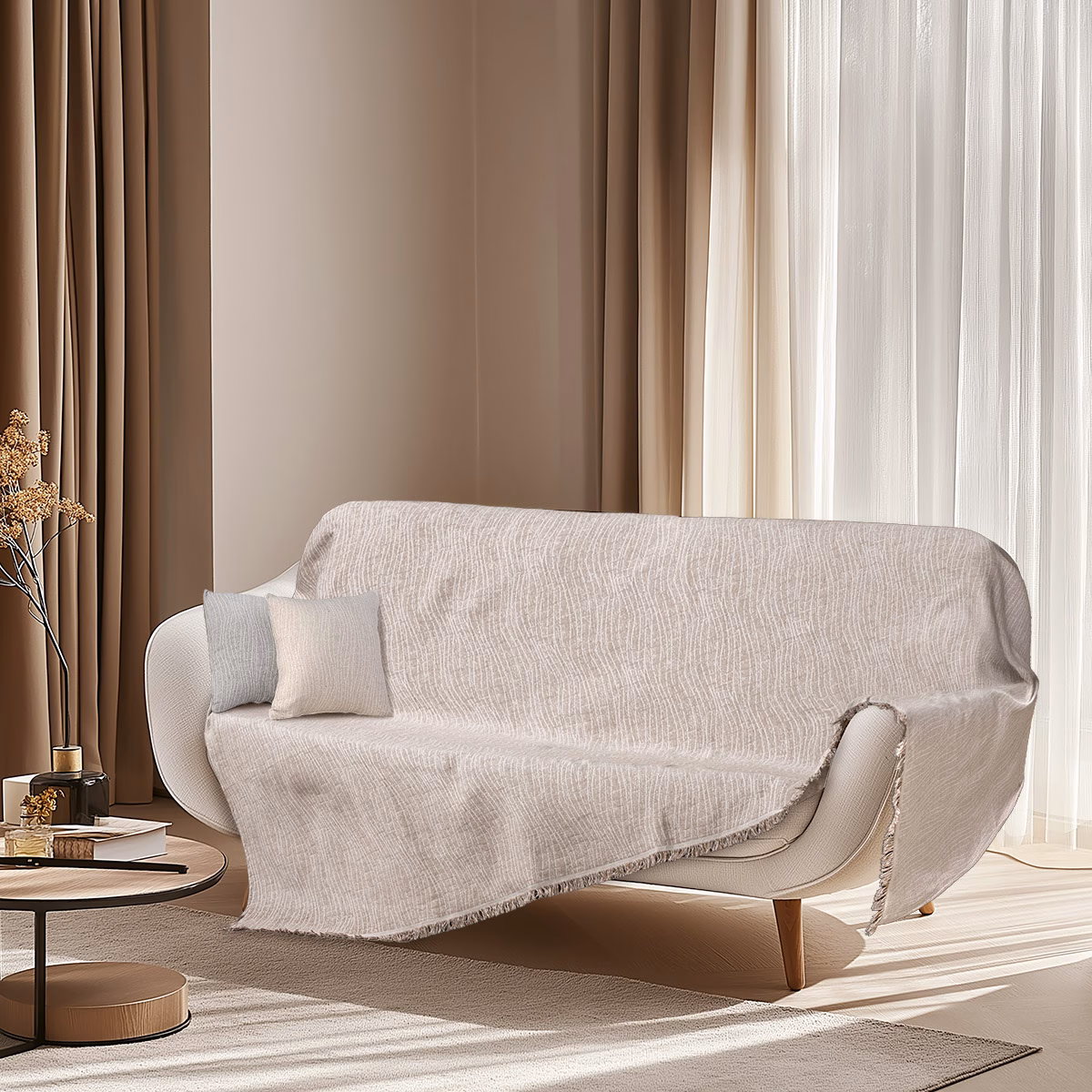 Χαρίστε στο σαλόνι ή στο καθιστικό σας μία αίσθηση φυσικής αρμονίας με τα νέα μας ριχτάρια, κατασκευασμένα από εξαιρετικής ποιότητας ύφασμα 80% βαμβάκι και 20% πολυεστέρα. Με διακριτικά σχέδια και γήινα χρώματα, ταιριάζουν ιδανικά σε κάθε διακόσμηση, προσφέροντας άνεση και στυλ.
