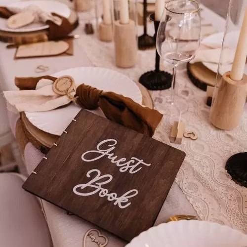 Ξύλινο βιβλίο ευχών 22 x 19 cm με 40 σελίδες, ιδανικό για γάμους, βαπτίσεις και ξεχωριστές εκδηλώσεις. Φτιαγμένο από ποιοτικό ξύλο, προσφέρει μια κομψή και φυσική αίσθηση, ενώ οι σελίδες του παρέχουν αρκετό χώρο για ευχές και μηνύματα από τους καλεσμένους σας. Ένα ιδιαίτερο αναμνηστικό που θα μείνει για πάντα.