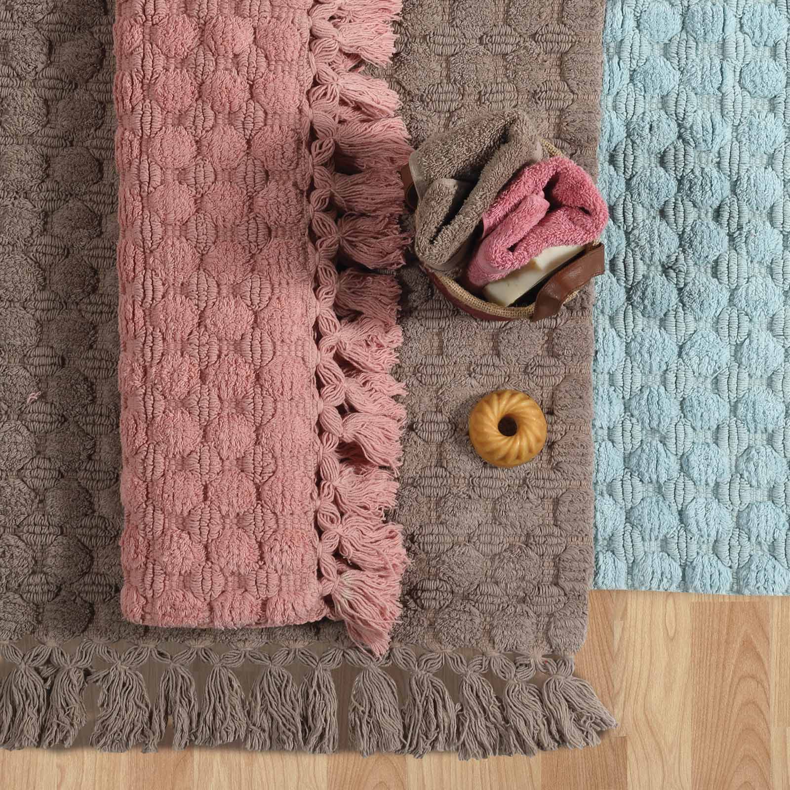 Ταπέτο μπάνιου Das home με ανάγλυφο σχέδιο και περιμετρική φάσα με κρόσια. Είναι απο 100% βαμβάκι, ιδιαίτερα απαλό, απορροφητικό και ανθεκτικό στη χρήση. Διατίθεται σε διάσταση 50x80cm. Das home…makes your house a home!. Χώρα προέλευσης: Ινδια. Σύνθεση από 100% Βαμβακι. Οδηγίες Πλυσίματος: Πλύσιμο στους 30°C. Σίδερο σε χαμηλή θερμοκρασία. Όχι χρήση χλωρίου ή λευκαντικού. Όχι στεγνό καθάρισμα. Όχι στεγνωτήριο.