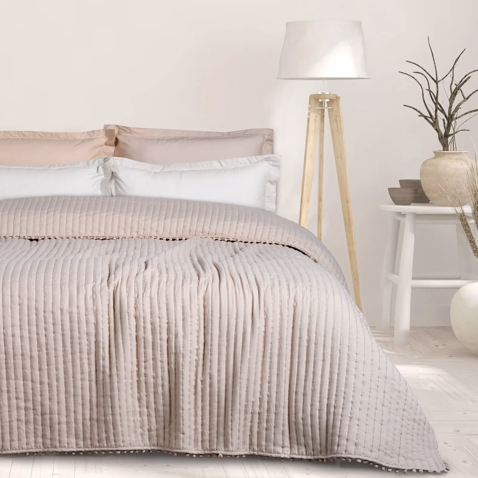 Kουβερλί μονόχρωμο της σειράς Happy με pompom. Είναι από 100% microfibre, υποαλλεργικό, διαίτερα απαλό στην αφή και ανθεκτικό στη χρήση. Διατίθεται σε διάσταση 220Χ240εκ. Das home…makes your house a home!