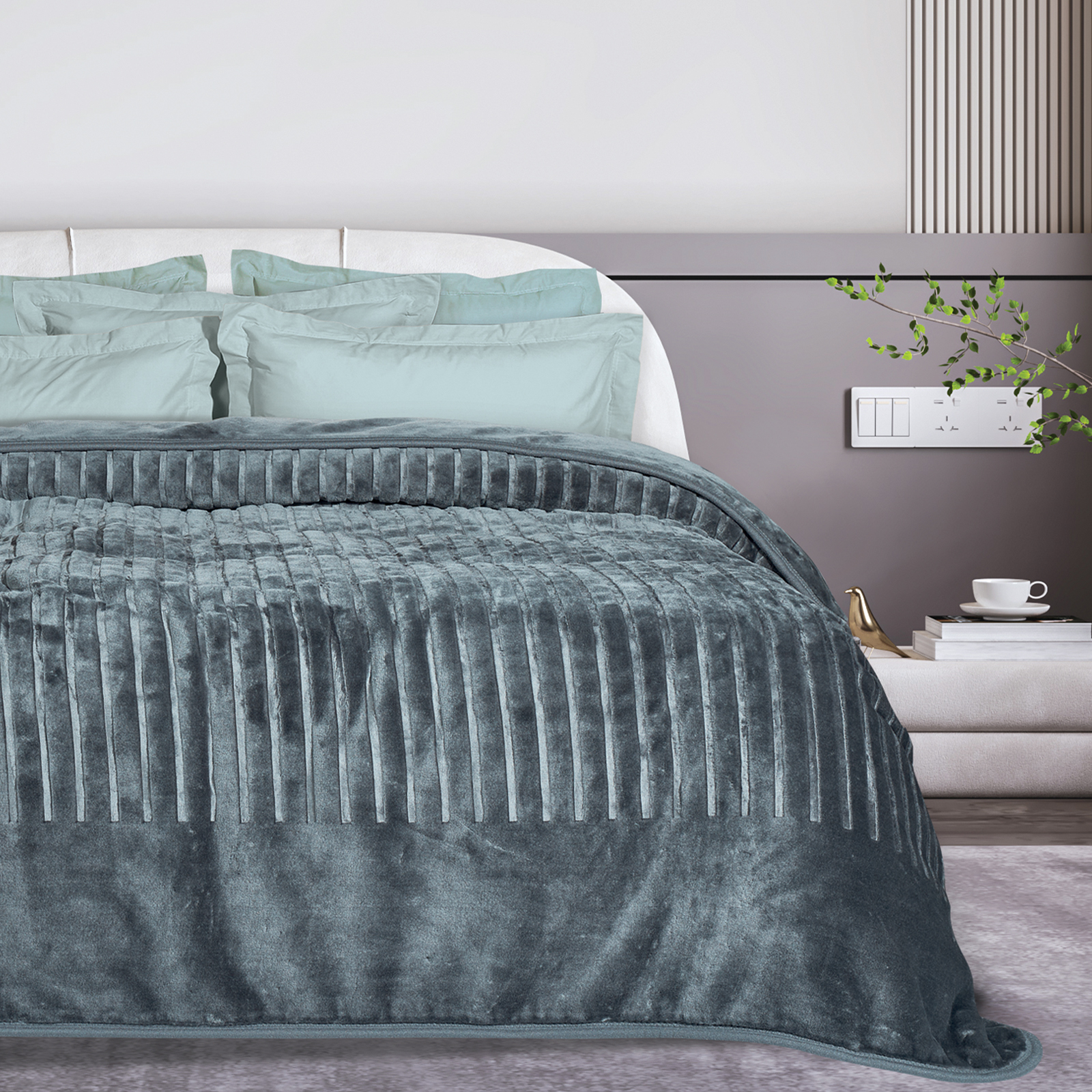 Κουβέρτα Velour μονόχρωμη με ανάγλυφες ρίγες. Είναι από 100% acrylic βάρους 700gr/m², υποαλλεργική, ιδιαίτερα απαλή στην υφή και ανθεκτική στη χρήση. Διατίθεται σε διάσταση 220X240εκ.