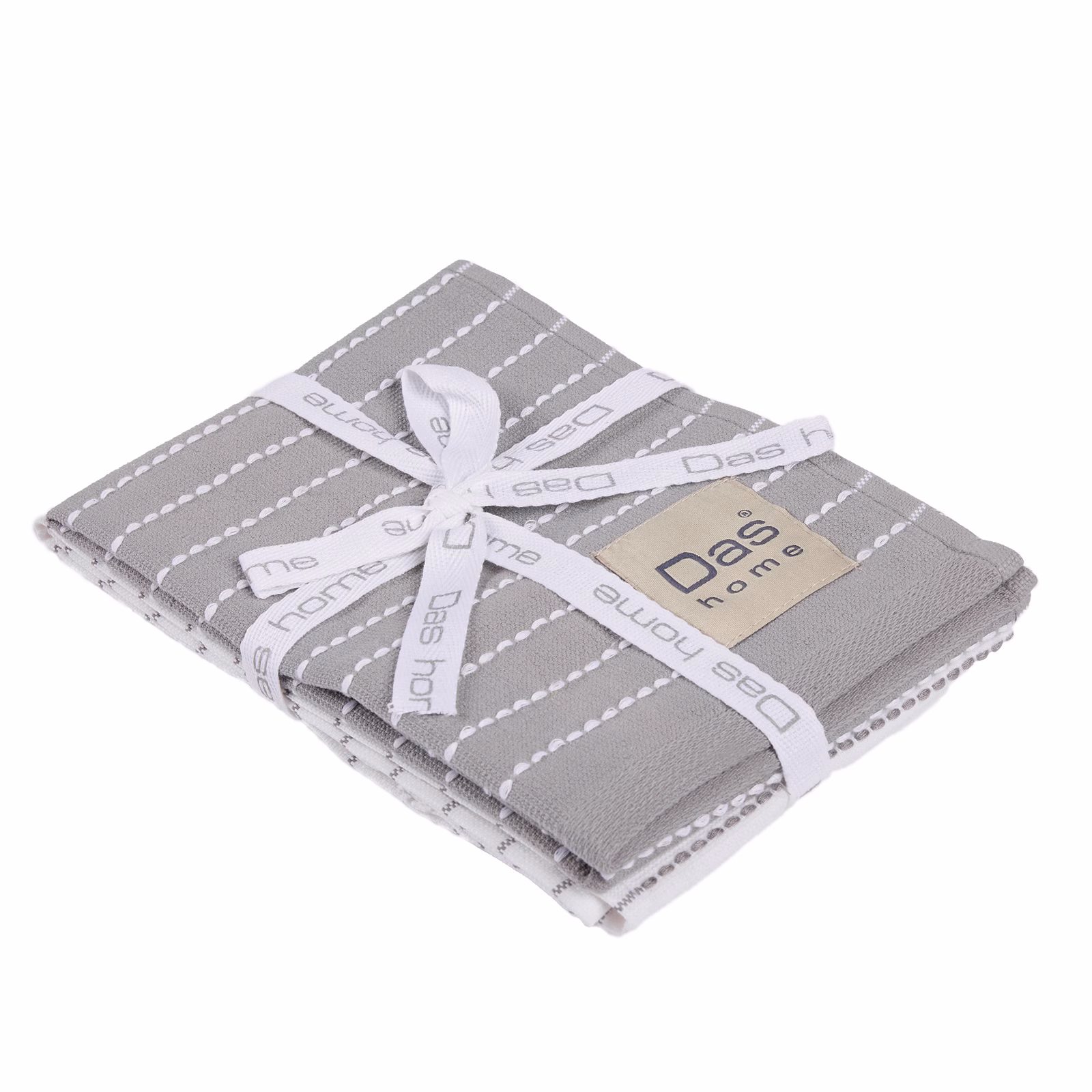 Ανανεώστε την κουζίνα σας με τα ζακάρ σετ ποτηρόπανα της Das home. Ιδιαίτερα εύχρηστα, ανθεκτικά στη χρήση και πολύ απορροφητικά από 100% βαμβάκι. Το σετ αποτελείται από δύο τεμάχια σε διάσταση 30×50εκ. Das home…makes your house a home!