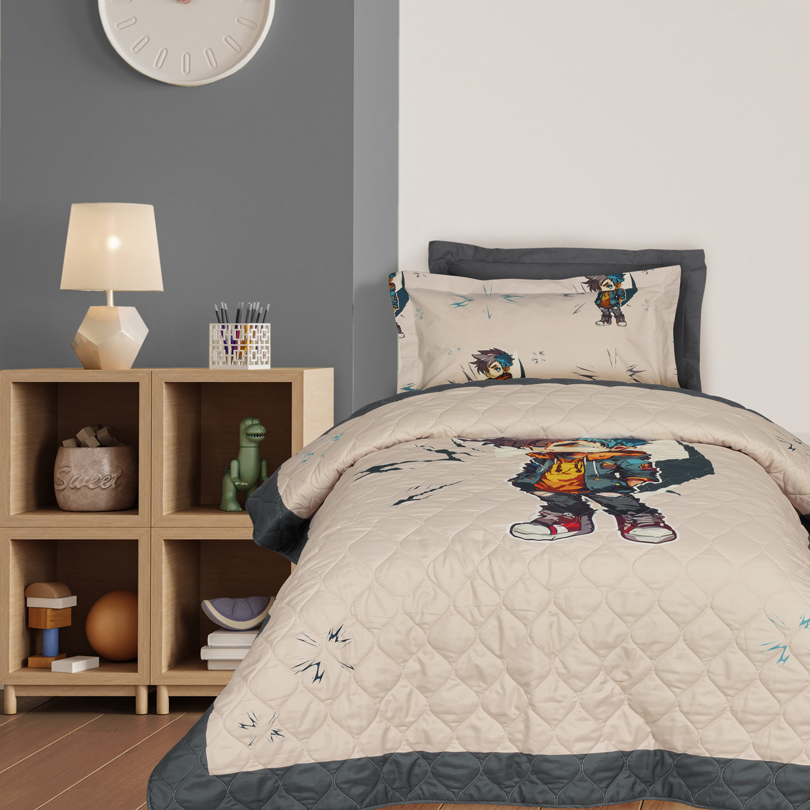 Kουβερλί της σειράς kid σε διάσταση 160Χ220εκ. Είναι από υποαλλεργικό ύφασμα 100%microfibre, ιδιαίτερα απαλό στην αφή και ανθεκτικό στη χρήση. Das home…makes your house a home! Πλύσιμο στους 30°C. Όχι σιδέρωμα. Όχι χρήση χλωρίου ή λευκαντικού. Όχι χρήση στεγνωτηρίου. Όχι στεγνό καθάρισμα.