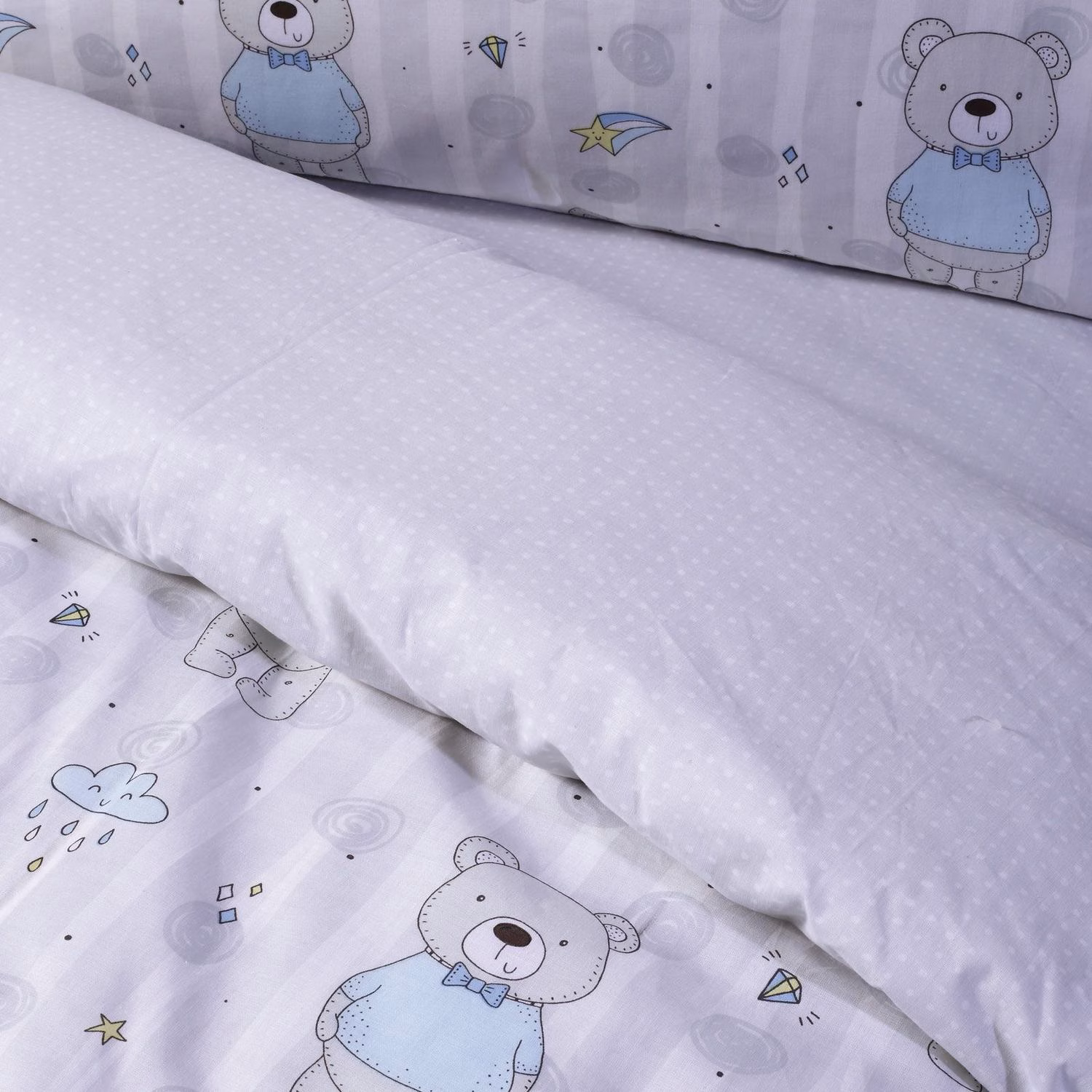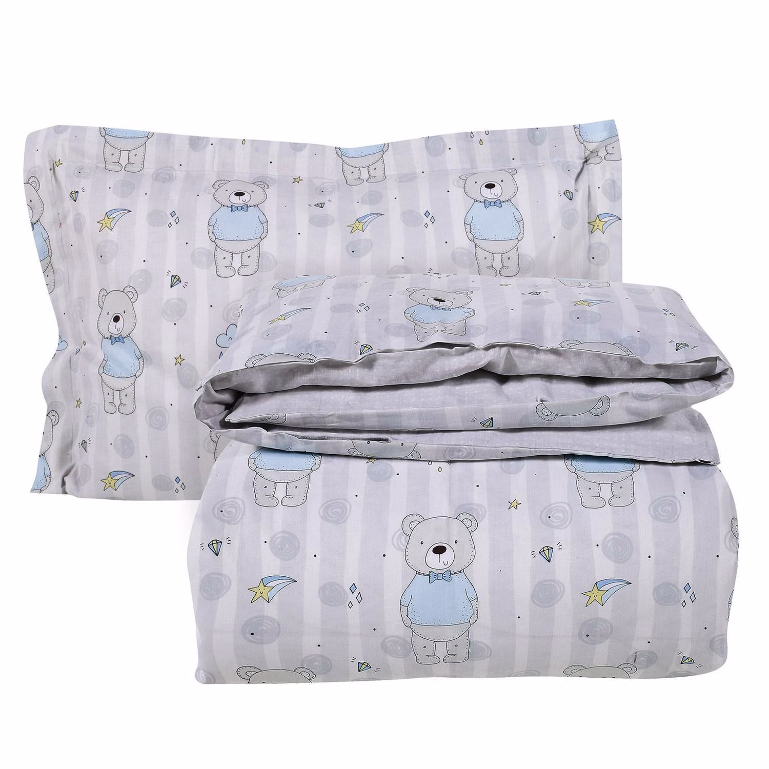Σετ παπλωματοθήκη της σειράς Kid δύο όψεων. Είναι από 100% υποαλλεργικό βαμβάκι με πυκνότητα ύφανσης 160 TC, ιδιαίτερα απαλή στην αφή & ανθεκτική στη χρήση. Το σετ περιλαμβάνει μία παπλωματοθήκη διάστασης 160Χ240cm και μία μαξιλαροθήκη 50Χ70+5cm. Das home…makes your house a home!
