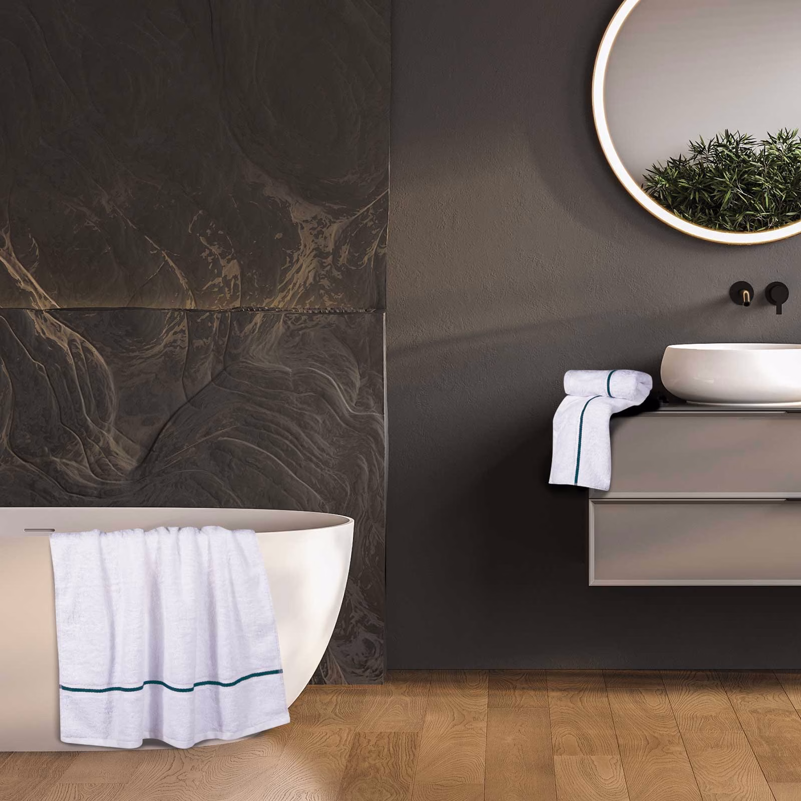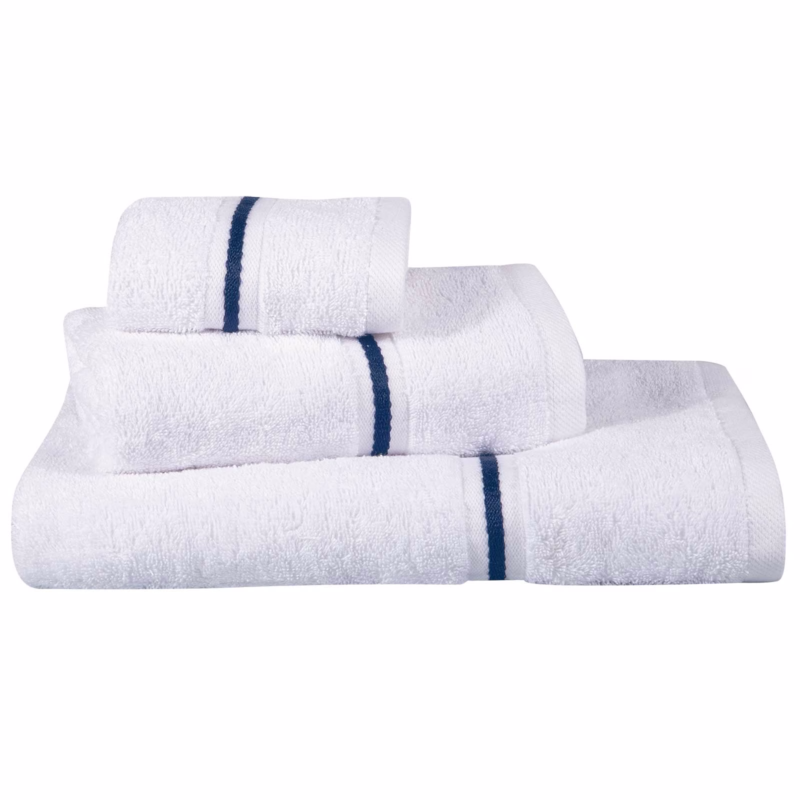Σετ πετσέτες Greenwich Polo Club με διακοσμητική μπλε ρίγα. Η ύφανση είναι jacquard, με βάρος 480gr/m2 και η σύνθεση είναι 100% βαμβάκι. Είναι ιδιαίτερα απαλές, απορροφητικές και ανθεκτικές, ενώ τα χρώματα που χρησιμοποιούνται είναι ανεξίτηλα και υποαλλεργικά. Το σετ αποτελείται από 3 πετσέτες σε διαστάσεις 30Χ50εκ, 50Χ90εκ, 70Χ140εκ. Επιλέξτε Greenwich Polo Club για να απολαύσετε ποιότητα, στυλ και πολυτέλεια.