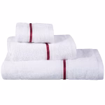 Σετ πετσέτες Greenwich Polo Club με διακοσμητική κόκκινη ρίγα. Η ύφανση είναι jacquard, με βάρος 480gr/m2 και η σύνθεση είναι 100% βαμβάκι. Είναι ιδιαίτερα απαλές, απορροφητικές και ανθεκτικές, ενώ τα χρώματα που χρησιμοποιούνται είναι ανεξίτηλα και υποαλλεργικά. Το σετ αποτελείται από 3 πετσέτες σε διαστάσεις 30Χ50εκ, 50Χ90εκ, 70Χ140εκ. Επιλέξτε Greenwich Polo Club για να απολαύσετε ποιότητα, στυλ και πολυτέλεια.