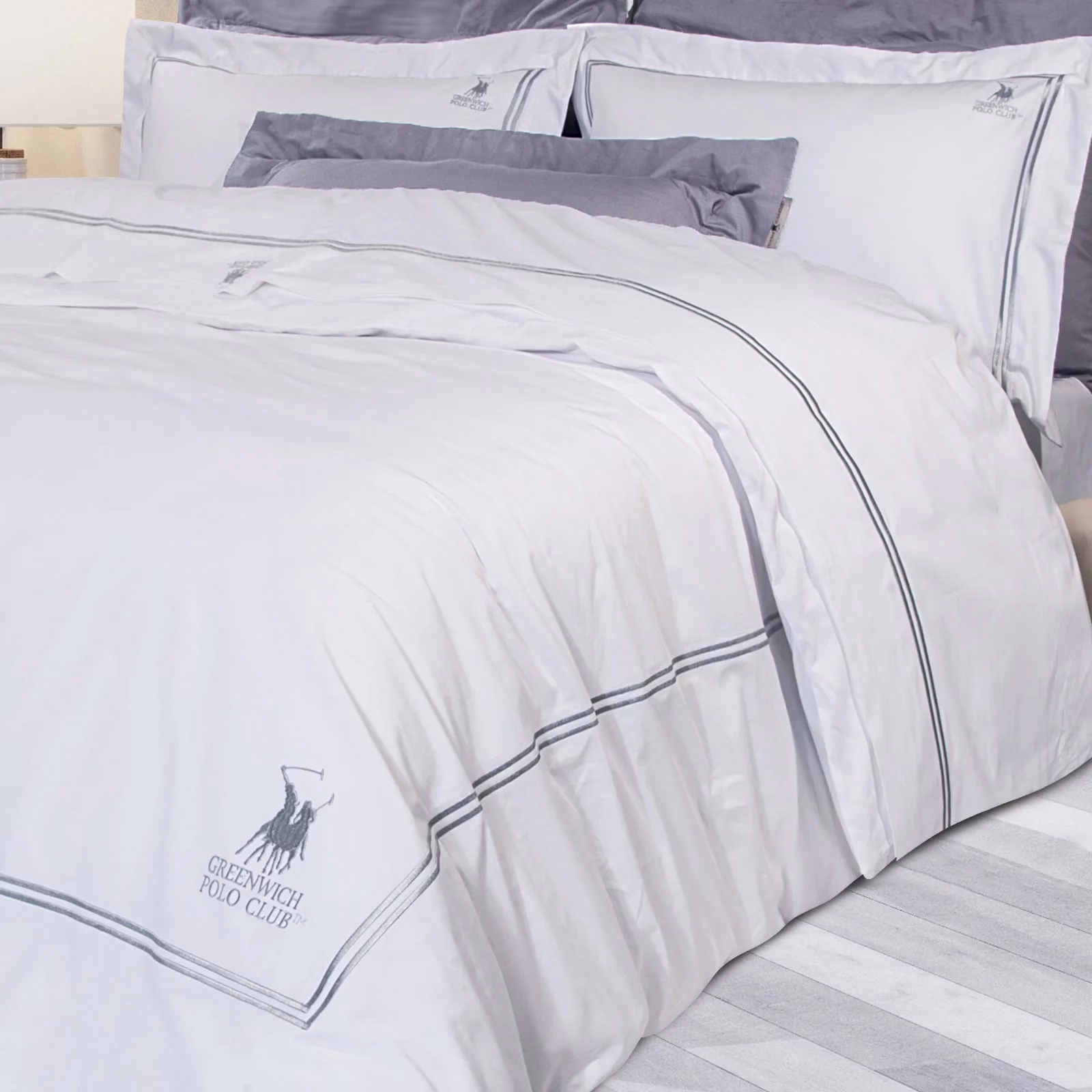 Σετ σεντόνια Greenwich Polo Club με κέντημα της σειράς Premium. Είναι από 100% βαμβάκι σατέν με πυκνότητα ύφανσης 210TC και με ειδική επεξεργασία για εύκολο σιδέρωμα. Το σετ αποτελείται από 2 σεντόνια διαστάσεων 280Χ270εκ και 2 μαξιλαροθήκες 50Χ70+7εκ με περιμετρική ραφή oxford. Αυτό που χαρακτηρίζει την συλλογή είναι οι απαλές αποχρώσεις, τα διακριτικά σχέδια και το διαχρονικό ύφος. Επιλέξτε Greenwich Polo Club για να απολαύσετε ποιότητα, στυλ και πολυτέλεια.
