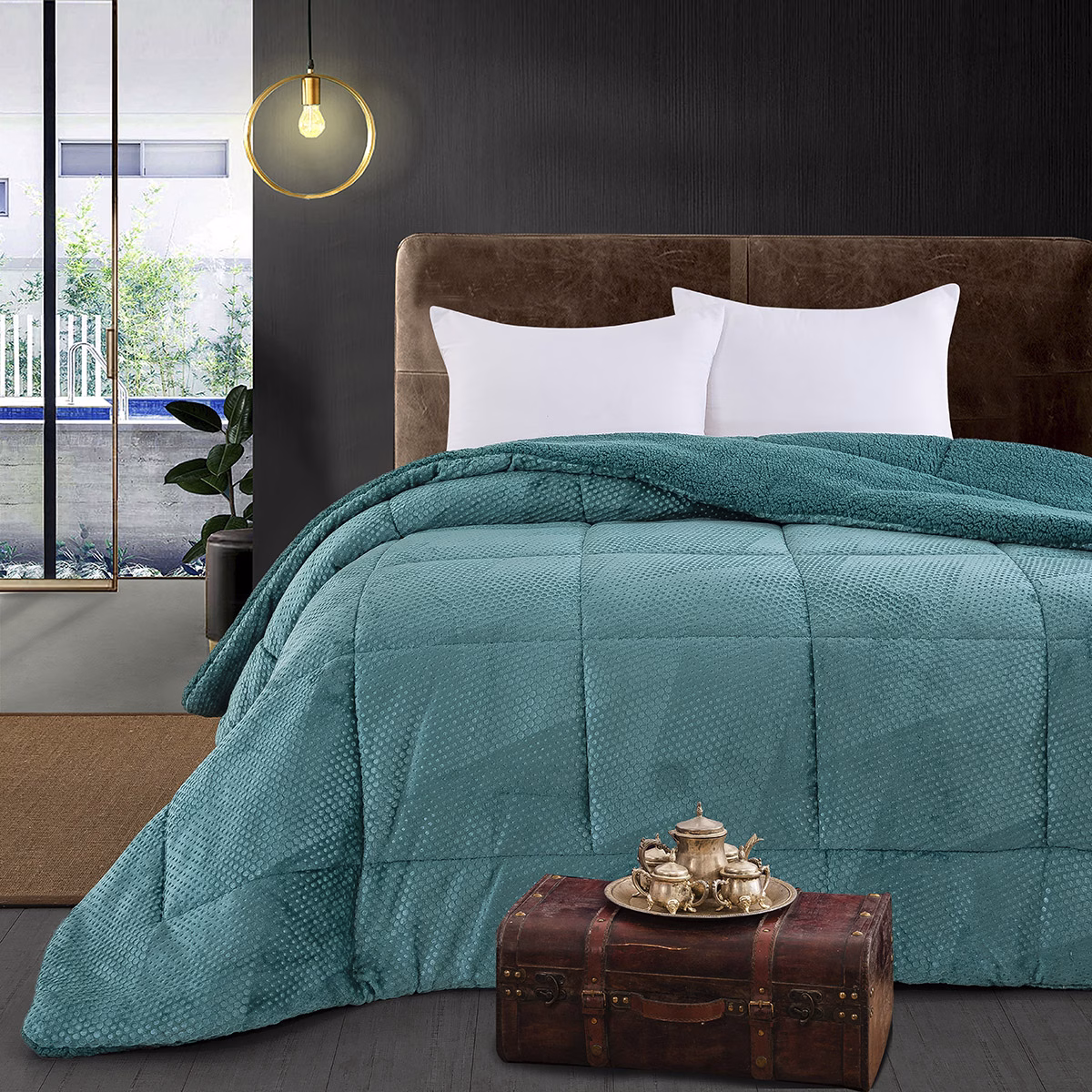 Υπέροχο υπέρδιπλο κουβερτοπάπλωμα της Beauty Home μονόχρωμο σε διάσταση 220×240. Έχει μοντέρνο διακριτικό ανάγλυφο σχέδιο από 100% flannel microfiber υλικό από την μία πλευρά και μαλακή γούνα σέρπα από την άλλη πλευρά του. Το γέμισμα αποτελείτε από σιλικονούχα ίνα Hollowfiber βάρους 300gsm. Διατίθεται σε τέσσερις μοναδικές αποχρώσεις. Είναι πολύ ελαφρύ, μαλακό, εξαιρετικά απαλό στην υφή και προσφέρει την ιδανική θερμοκρασία κατά την διάρκεια του ύπνου. Αποτελεί την απόλυτη επιλογή για τους χειμερινούς μήνες καθώς προσφέρει την αίσθηση της ασφάλειας της άνεσης και της ζεστασιάς προσδίδοντας στυλ και χρώμα στον χώρο σας.