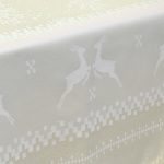 Χριστουγεννιάτικο τραπεζομάντηλο της σειράς Kessare από την εταιρεία Lino Home. Το τραπεζομάντηλο Kessare είναι μια λαμπερή επιλογή που αποπνέει τον μαγικό κόσμο των γιορτών. Το εκρού χρώμα δημιουργεί μια αίσθηση αγνότητας, που συνδυάζεται με την πολυτέλεια των χρυσών νιφάδων και των ταράνδων που διακοσμούν το τραπεζομάντηλο. Οι χρυσές νιφάδες, διάσπαρτες πάνω στο τραπεζομάντηλο λάμπουν σαν αστέρια στον χειμερινό ουρανό. Τα ελάφια που στολίζουν το τραπεζομάντηλο, προσφέρουν μια γραφική νότα της χειμερινής υπαίθρου. Η απεικόνισή τους αναμιγνύει την αίσθηση της ζεστασιάς με τη μαγεία των γιορτών. Το τραπεζομάντηλο Kessare από είναι η τέλεια προσθήκη στη γιορτινή διακόσμηση, δίνοντας έναν αναλλοίωτο αέρα γαλήνης και χαράς σε κάθε γεύμα και συγκέντρωση με αγαπημένα πρόσωπα. Είναι κατασκευασμένο από βαμβακερό ύφασμα για να προσφέρει ευκολία στο στρώσιμο και τη μεταχείρισή του. Διατίθεται σε 3 διαστάσεις και σε σχήμα τραβέρσας για να δημιουργήσετε μοναδικούς συνδυασμούς.