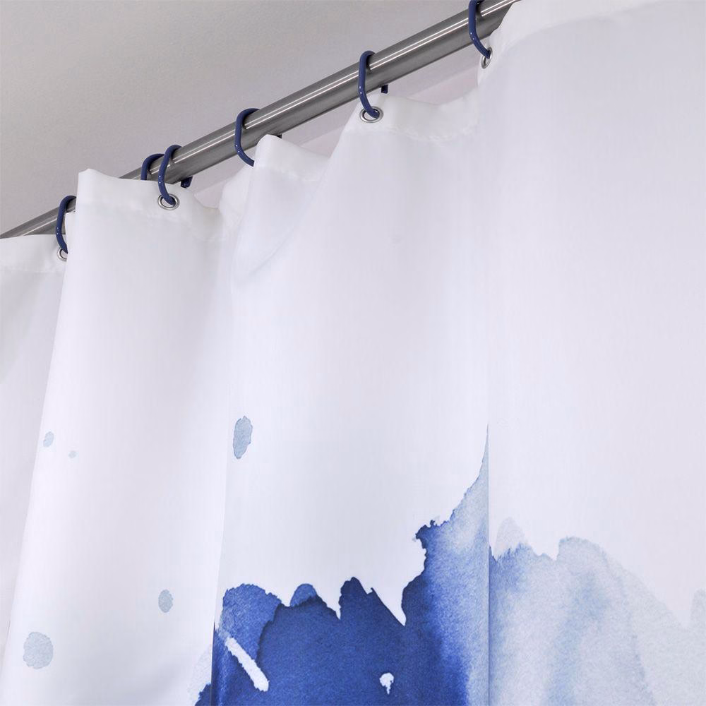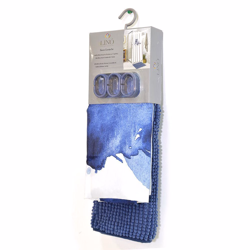 Κουρτίνα μπάνιου από τη νέα Bath Collection της εταιρείας Lino Home. Η κουρτίνα είναι σχεδιασμένη με απόλυτο και κομψό ύφος καθώς είναι διακοσμημένη ένα αφηρημένου σχεδιασμούς λουλούδι σε μπλε αποχρώσεις. Η νέα συλλογή σε κουρτίνες μπάνιου, παρουσιάζει την ιδιαιτερότητα να έχει κρίκους χρωματικά ταιριαστούς με την κουρτίνα. Η νέα μας συλλογή σε κουρτίνες μπάνιου, είναι κατασκευασμένες από 100% αδιάβροχο πολυεστερικό ύφασμα προκειμένου και να στέκεται όμορφα κρεμασμένη στο χώρο αλλά και να προστατεύει το χώρο από τυχόν νερά που πετάγονται κατά τη διάρκεια του μπάνιου.