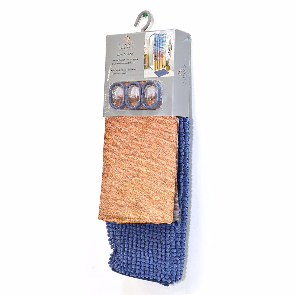 Κουρτίνα μπάνιου από τη νέα Bath Collection της εταιρείας Lino Home. Η κουρτίνα είναι σχεδιασμένη με απόλυτα χαλαρωτικό ύφος καθώς είναι διακοσμημένη με την εικόνα μιας παραλίας σε άκρως καλοκαιρινή διάθεση. Η νέα συλλογή σε κουρτίνες μπάνιου, παρουσιάζει την ιδιαιτερότητα να έχει κρίκους χρωματικά ταιριαστούς με την κουρτίνα. Η νέα μας συλλογή σε κουρτίνες μπάνιου, είναι κατασκευασμένες από 100% αδιάβροχο πολυεστερικό ύφασμα προκειμένου και να στέκεται όμορφα κρεμασμένη στο χώρο αλλά και να προστατεύει το χώρο από τυχόν νερά που πετάγονται κατά τη διάρκεια του μπάνιου.