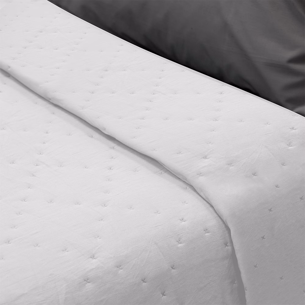 Υπέρδιπλο κουβερλί σε απόχρωση off white με prewashed επεξεργασία για απαλή αίσθηση και μεγαλύτερη αντοχή. Το εξωτερικό ύφασμα είναι 100% microfiber (280gsm) και η γέμιση 100% polyester (100gr), προσφέροντας ανάλαφρο και δροσερό σκέπασμα. Με συνολικό βάρος (1480gr), είναι ιδανικό για τους ανοιξιάτικους και καλοκαιρινούς μήνες.