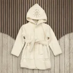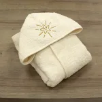 Μπουρνούζι Smiley Sun της εταιρείας Lino Home! Το μπουρνούζι Smiley Sun είναι κατασκευασμένο από 100% βαμβάκι, βάρους 450gsm/m, σε ουδέτερη εκρού βάση. Διαθέτει κέντημα με γλυκιά παιδική φιγούρα στην κουκούλα του για να το λατρέψουν οι μικροί μας φίλοι! Το μπουρνούζι smiley sun είναι ιδανικό για καθημερινή χρήση, αφού συνδυάζει λειτουργικότητα και στυλ. Η συσκευασία περιέχει ένα μπουρνούζι ηλικίας 2-4.
