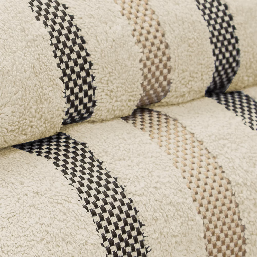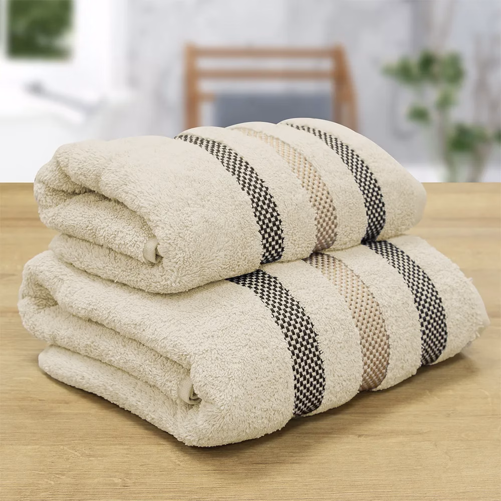 Πετσέτα Baho της εταιρείας Lino Home! Η πετσέτα Baho είναι κατασκευασμένη από υψηλής ποιότητας βαμβάκι πενιέ, βάρους 600gsm/m2, που προσφέρει εξαιρετική απαλότητα και απορροφητικότητα. Διαθέτει off white βάση ενώ τη διακοσμούν υφαντές ρίγες σε μπεζ-καφέ αποχρώσεις, οι οποίες δημιουργούν κομψό γεωμετρικό σχέδιο. Η πετσέτα baho είναι ιδανική για καθημερινή χρήση, προσφέροντας πολυτέλεια και αντοχή.
