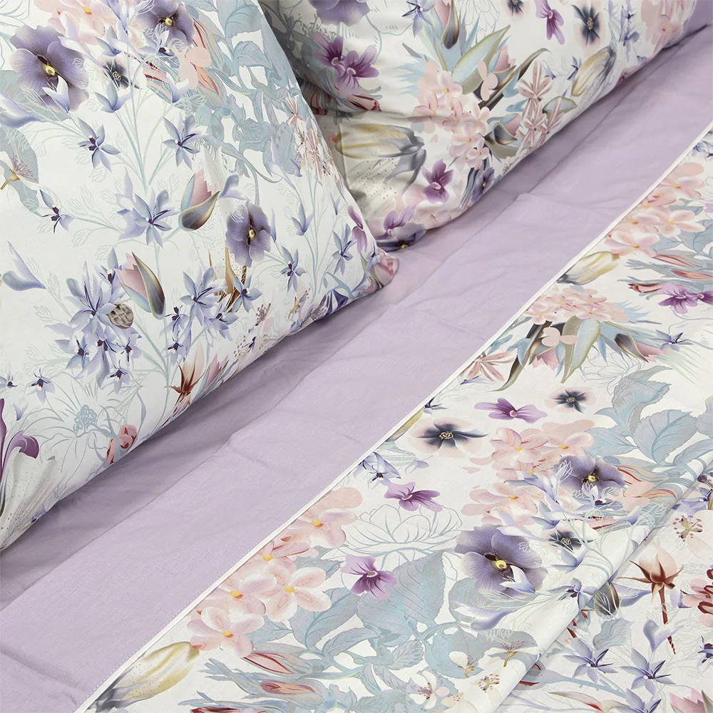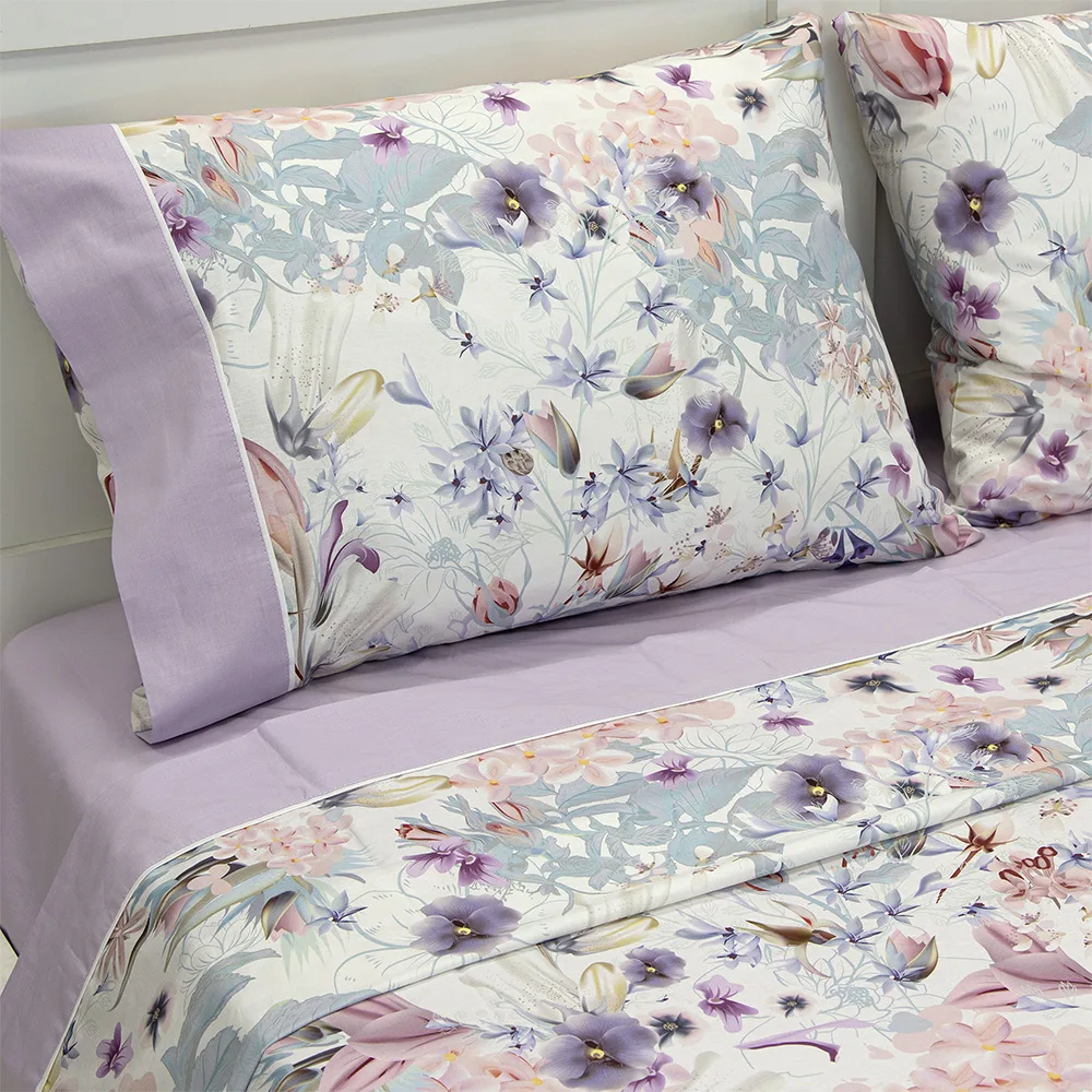 Σετ σεντόνια Dreamcocoon Lilac της εταιρείας Lino Home! To σεντόνι Dreamcocoon διαθέτει υπέροχο floral μοτίβο σε απαλές μωβ και ροζ αποχρώσεις. Το μοντέρνο design λουλουδιών προσδίδει μία ρομαντική και κομψή ατμόσφαιρα στο υπνοδωμάτιο. Το υψηλής ποιότητας ύφασμα, από 100% βαμβάκι περκάλι, 160 κλωστών ανα ιντσα, είναι εξαιρετικά απαλό, μεταξένιο στην αφή, και προσφέρει αίσθηση πολυτέλειας και άνεσης στον ύπνο. Το περκάλι επίσης, είναι ιδανικό υλικό για όλες τις εποχές του χρόνου, χάρη στην άριστη διαπνοή του και την ανθεκτικότητά του. Το σεντόνι Dreamcocoon, διακρίνεται επίσης για την άριστη κατασκευή του, αφού διαθέτει φάσα με σιρίτι στο μαξιλάρι και στο πανωσέντονο, αλλά και κομποζαρισμένο μονόχρωμο κατωσέντονο.