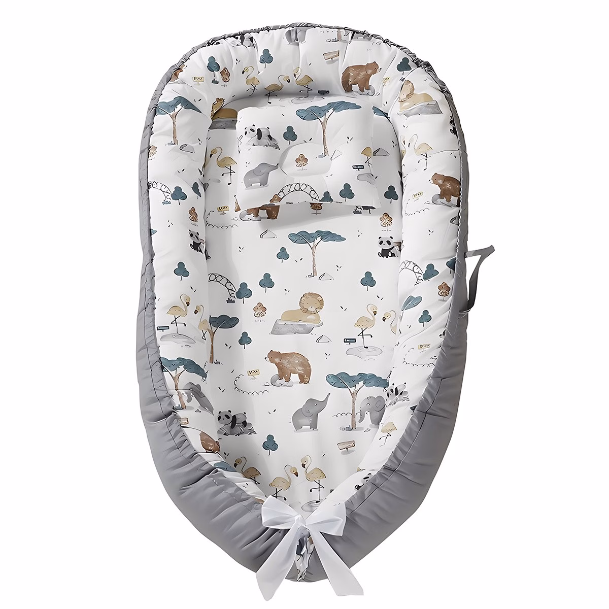 Φωλιά ύπνου Nature σε εκρού-γκρι αποχρώσεις, με σχέδιο από τη φύση από την εταιρεία Melinen! Είναι ιδανική για τον ύπνο του μωρού σας τους πρώτους μήνες. Το εξωτερικό κάλυμμα είναι από 100% βαμβάκι περκάλι και το στρώμα από 100% memory foam 3 cm. Διαθέτει κρυφό φερμουάρ ώστε το στρώμα να αφαιρείται γρήγορα και το κάλυμμα να πλένεται εύκολα.