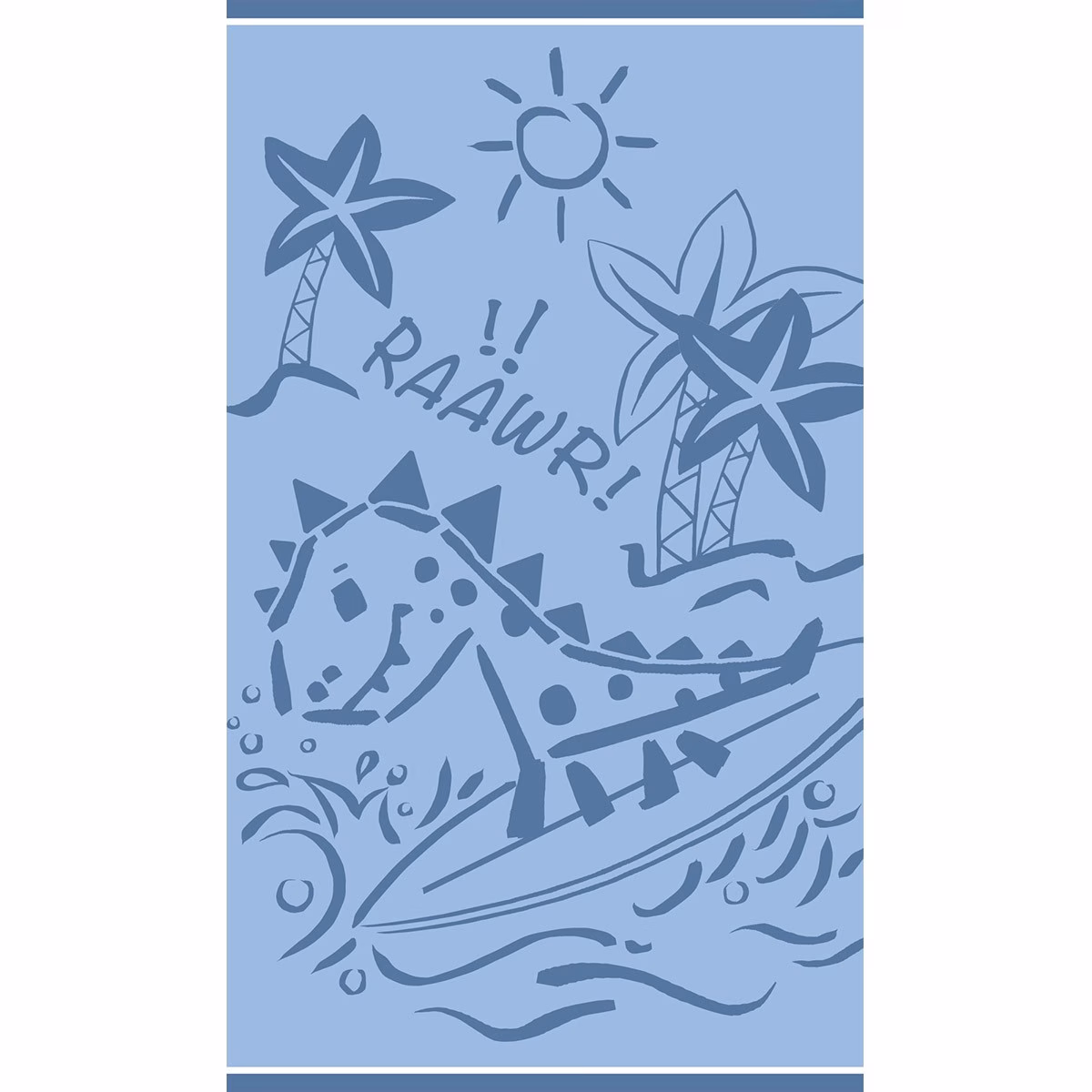 Παιδική πετσέτα θαλάσσης Dinosaur Surfer Blue από τη Melinen, για μοναδικό στυλ στην παραλία! Είναι κατασκευασμένη από 100% βαμβακερό – jacquard velour ύφασμα, ιδιαίτερα απορροφητική και απαλή, ανθεκτική στις χρήσεις και τα συχνά πλυσίματα.