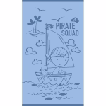 Παιδική πετσέτα θαλάσσης Pirate Squad Blue από τη Melinen, για μοναδικό στυλ στην παραλία! Είναι κατασκευασμένη από 100% βαμβακερό – jacquard velour ύφασμα, ιδιαίτερα απορροφητική και απαλή, ανθεκτική στις χρήσεις και τα συχνά πλυσίματα.