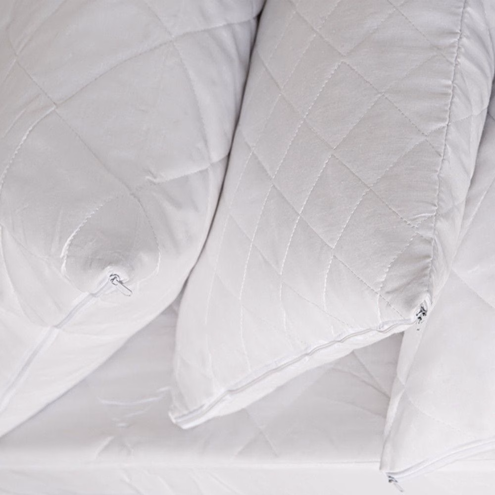 Προστατευτικές μαξιλαροθήκες με καπιτονέ εξωτερική επιφάνεια από ύφασμα 100% Microfiber, προστατεύουν τα μαξιλάρια σας από ανεπιθύμητους λεκέδες. Διαθέτουν επιφάνεια non-woven εσωτερικά και γέμιση από 100% πολυεστερική βάτα.