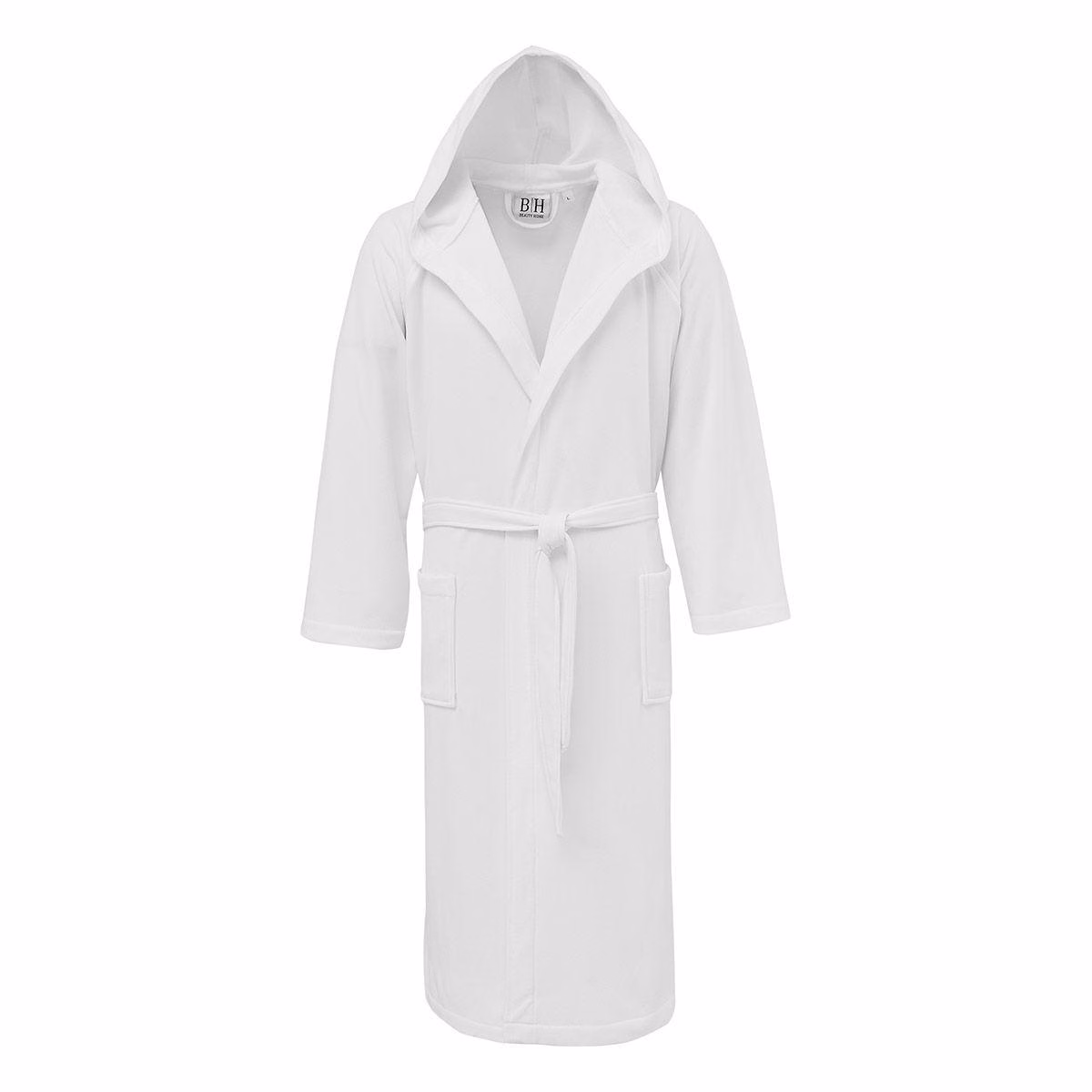 Μπουρνούζι μπάνιου της Beauty Home λευκό από αρίστης ποιότητας υλικά με ύφανση ζακάρ εξωτερικά και πετσετέ εσωτερικά. Μακρυμάνικο με κουκούλα, ζώνη στη μέση και επιπλέον πρακτικές τσέπες στο μπροστινό μέρος διαθέσιμο σε δύο μεγέθη. Είναι εξαιρετικά απορροφητικό , απαλό και προσφέρει την μέγιστη χαλάρωση.