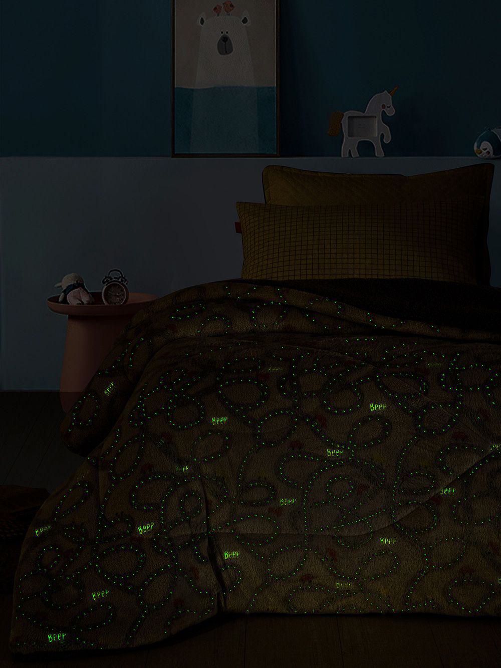 Η Συσκευασία Περιέχει 1 Κουβερτοπαπλωμα Φωσφοριζε 160×220 . Σύνθεση: Εξ: Luminated Flannel – Sherpa, Ες: 100% Polyester Fill, Βάρος Gsm 700 Gr/m² Να πλένεται στους 30ο C.