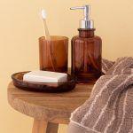 Η συσκευασία περιέχει: 1 Ντισπένσερ 7,4×17, 1 Σαπουνοθήκη 12×8,3×2,5, 1 Ποτήρι Μπάνιου 7,2×10,5, 1 Κουρτίνα 180×200