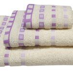 Πετσέτα ΚΟΜΒΟΣ Πεννιέ 450γρ/μ2 Πουά Ζακάρ Κρεμ-Λιλά Χειρός 30×50