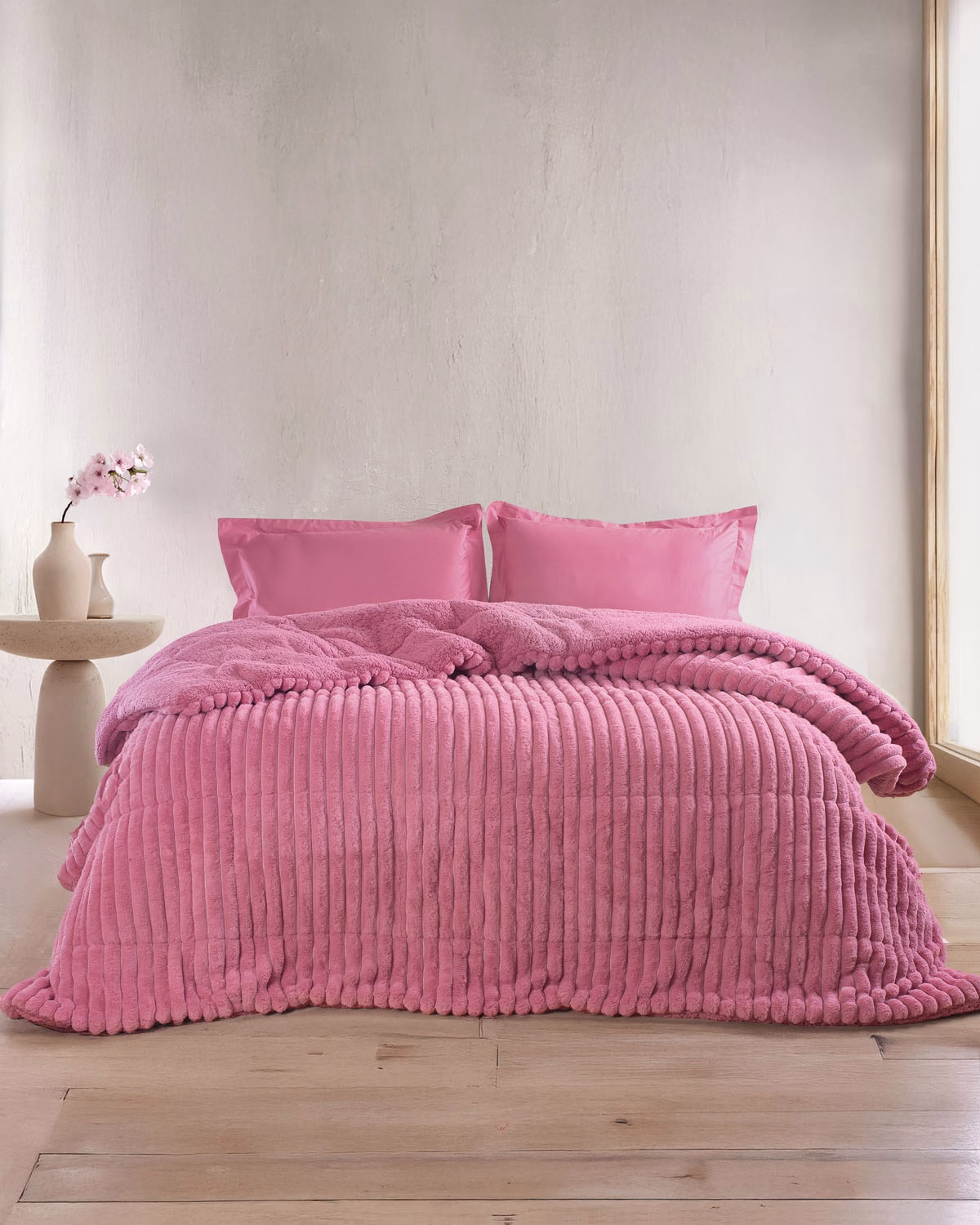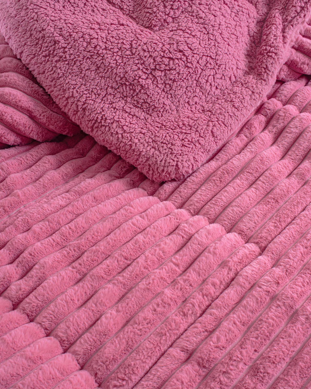 Κουβερτοπάπλωμα υπέρδιπλο 220X240 σε ροζ χρώμα, με απίστευτα απαλή rabbit eco fur από την πάνω μεριά και από την κάτω sherpa στο ίδιο χρώμα με την επιφάνεια. Πρόκειται για το πιο ζεστό κουβερτοπάπλωμα της συλλογής μας και αποτελεί ιδανικό σκέπασμα για τους χειμερινούς μήνες. ΑΝΩ ΟΨΗ: Jacquard Rabbit Eco Fur (350gr/m2) ΚΑΤΩ ΟΨΗ: Sherpa Ιδίου Χρώματος (180gr/m2) ΓΕΜΙΣΜΑ: Polyfill (280gr/m2) Bάρος: 810gr/m2