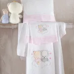 Σετ σεντόνια βρεφικά φανέλα 3 τεμαχίων με κέντημα – 100% βαμβάκι Περιέχει: 2 σεντόνια 100Χ160, 1 μαξιλαροθήκη 40Χ60 Newborn Collection ΡΟΖ