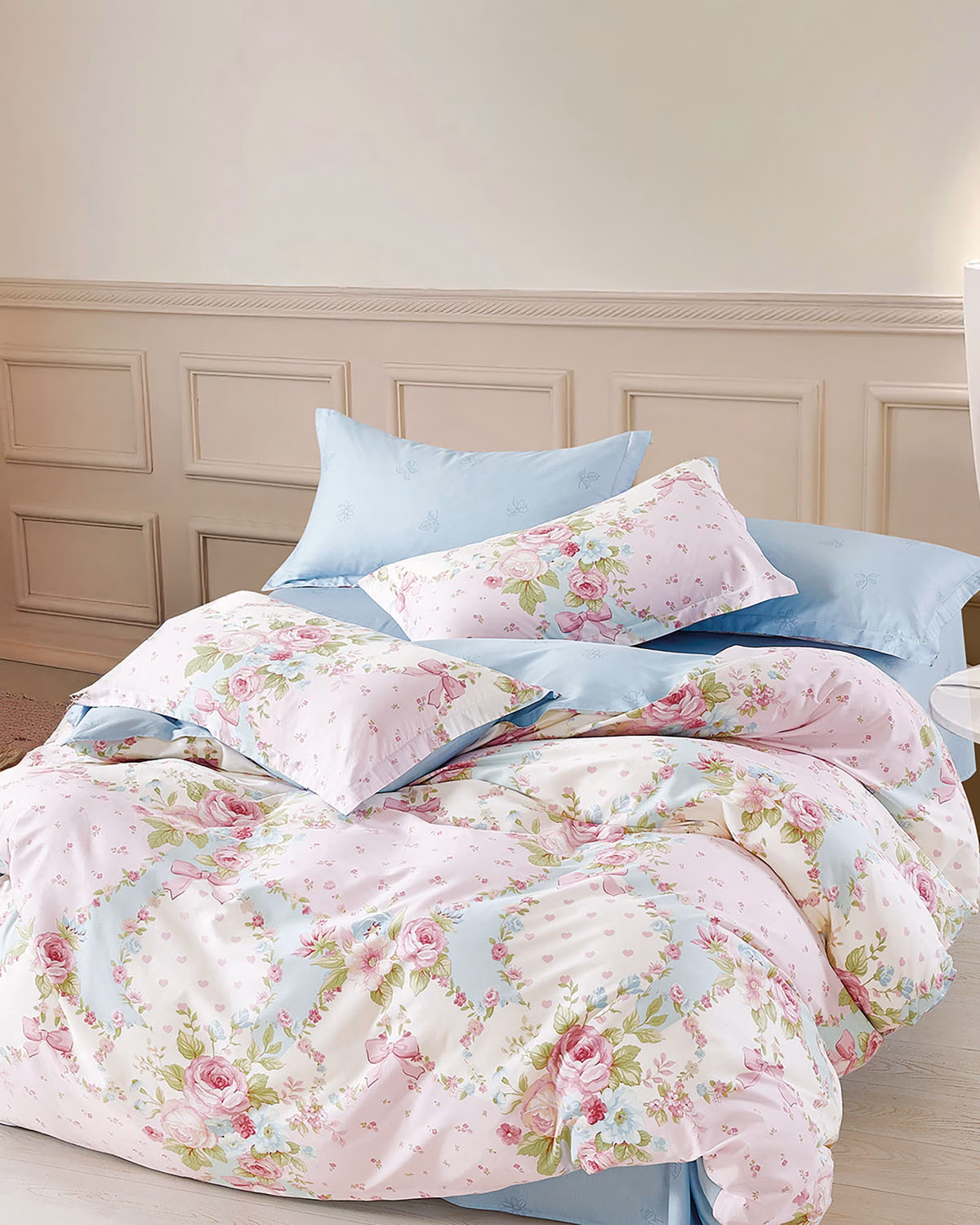 Μια υπέρκομψη υπέρδιπλη παπλωματοθήκη διπλή όψης, σε παστελ ροζ βάση με πολύχρωμα λουλούδια. Είναι κατασκευασμένη από 100% βαμβακοσατέν 200 κλωστών με νήματα πενιέ, για να προσφέρει απαλή αίσθηση και ευκολία στο σιδέρωμα. Διαθέτει κλείσιμο με φερμουάρ. Στο σετ περιλαμβάνονται δύο μαξιλαροθήκες τύπου oxford διπλής όψης. *Το σχέδιο στις μαξιλαροθήκες ενδέχεται να διαφέρει από αυτό της φωτογραφίας, καθώς η εταιρεία παράγει μαξιλαροθήκες από όλο το σχέδιο του υφάσματος και τις συσκευάζει με τυχαία σειρά. ** Συνδυάστε τα με τα υπόλοιπα είδη του ιδίου σετ για ένα ολοκληρωμένο αποτέλεσμα. ΦΡΟΝΤΙΔΑ/ ΟΔΗΓΙΕΣ ΠΛΥΣΗΣ Πλύσιμο σε μέγιστη θερμοκρασία νερού 40C. Απαγορεύεται η χρήση λευκαντικών ουσιών ή χλωρίνης. Στεγνωτήριο σε μεσαία θερμοκρασία. Σιδέρωμα σε μεσαία θερμοκρασία. Απαγορεύεται το στεγνό καθάρισμα.