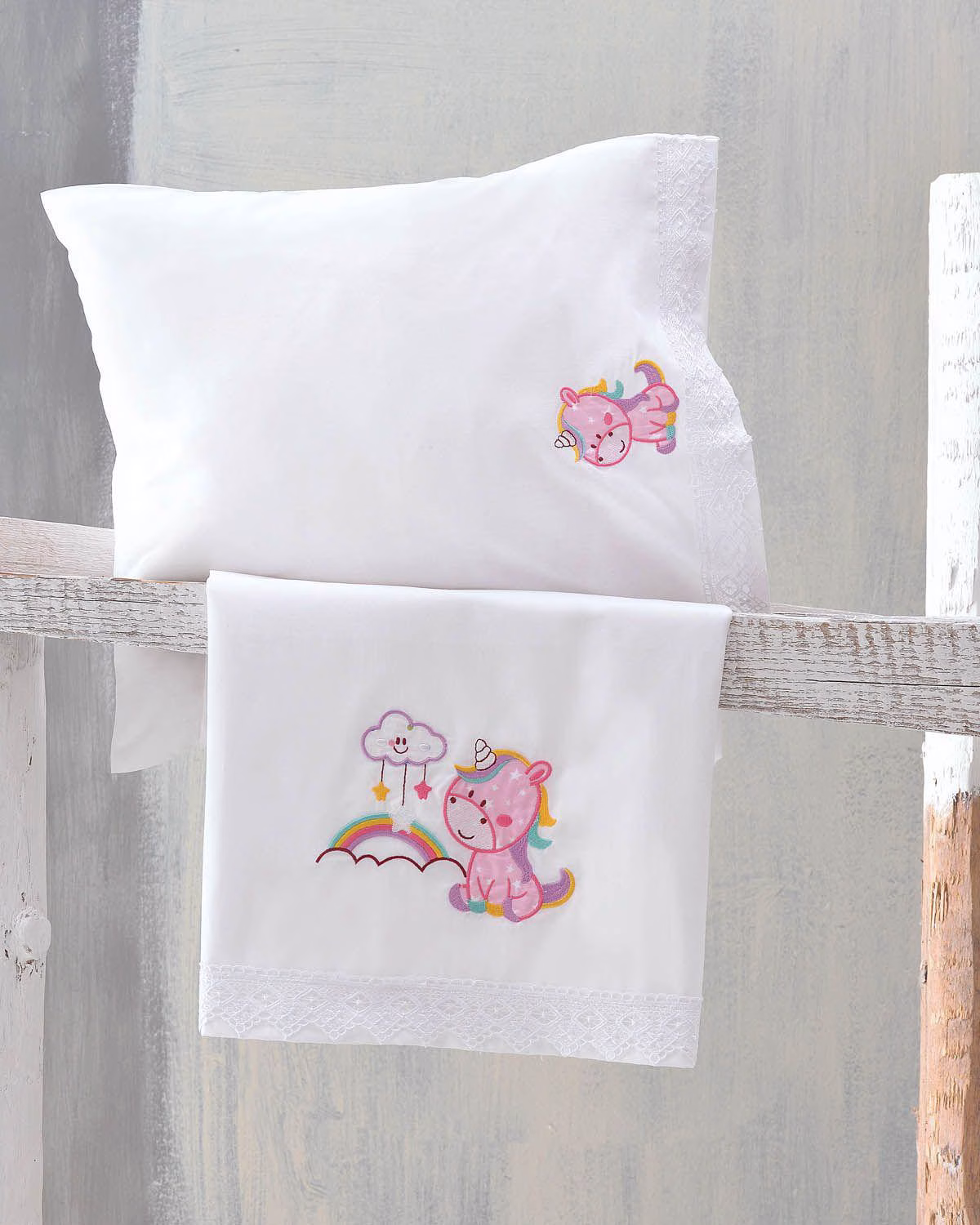 Σετ σεντόνια 3 τεμαχίων Monokero από 100% βαμβάκι. Η συσκευασία περιέχει 2 σεντόνια 100Χ160 και 1 μαξιλαροθήκη 40Χ60.