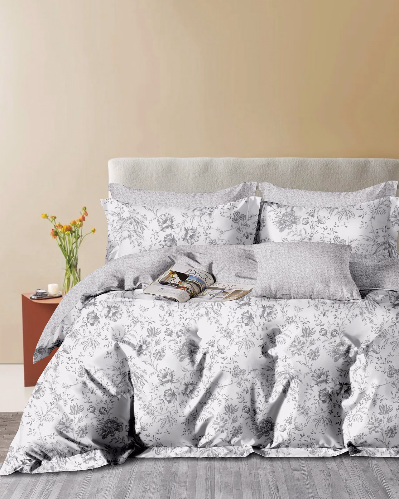 Ένα υπέρκομψο σετ υπέρδιπλων σεντονιών δίχρωμο σε γκρι χρωματισμούς με λουλούδια. Είναι κατασκευασμένα από 100% βαμβακοσατέν 200 κλωστών με νήματα πενιέ, που τα καθιστά εξαιρετικά μαλακά για να σας χαρίσουν τον τέλειο ύπνο, αλλά και ανθεκτικά και εύκολα στο σιδέρωμα. Η ποιότητα και το μοναδικό τους σχέδιο τους θα δώσουν στην κρεβατοκάμαρά σας ένα ξεχωριστό στυλ. Στο σετ περιλαμβάνονται και δύο μαξιλαροθήκες τύπου oxford διπλής όψης. *Το σχέδιο στις μαξιλαροθήκες ενδέχεται να διαφέρει από αυτό της φωτογραφίας, καθώς η εταιρεία παράγει μαξιλαροθήκες από όλο το σχέδιο του υφάσματος και τις συσκευάζει με τυχαία σειρά. ** Συνδυάστε τα με τα υπόλοιπα είδη του ιδίου σετ για ένα ολοκληρωμένο αποτέλεσμα. ΦΡΟΝΤΙΔΑ/ ΟΔΗΓΙΕΣ ΠΛΥΣΗΣ Πλύσιμο σε μέγιστη θερμοκρασία νερού 40C. Απαγορεύεται η χρήση λευκαντικών ουσιών ή χλωρίνης.