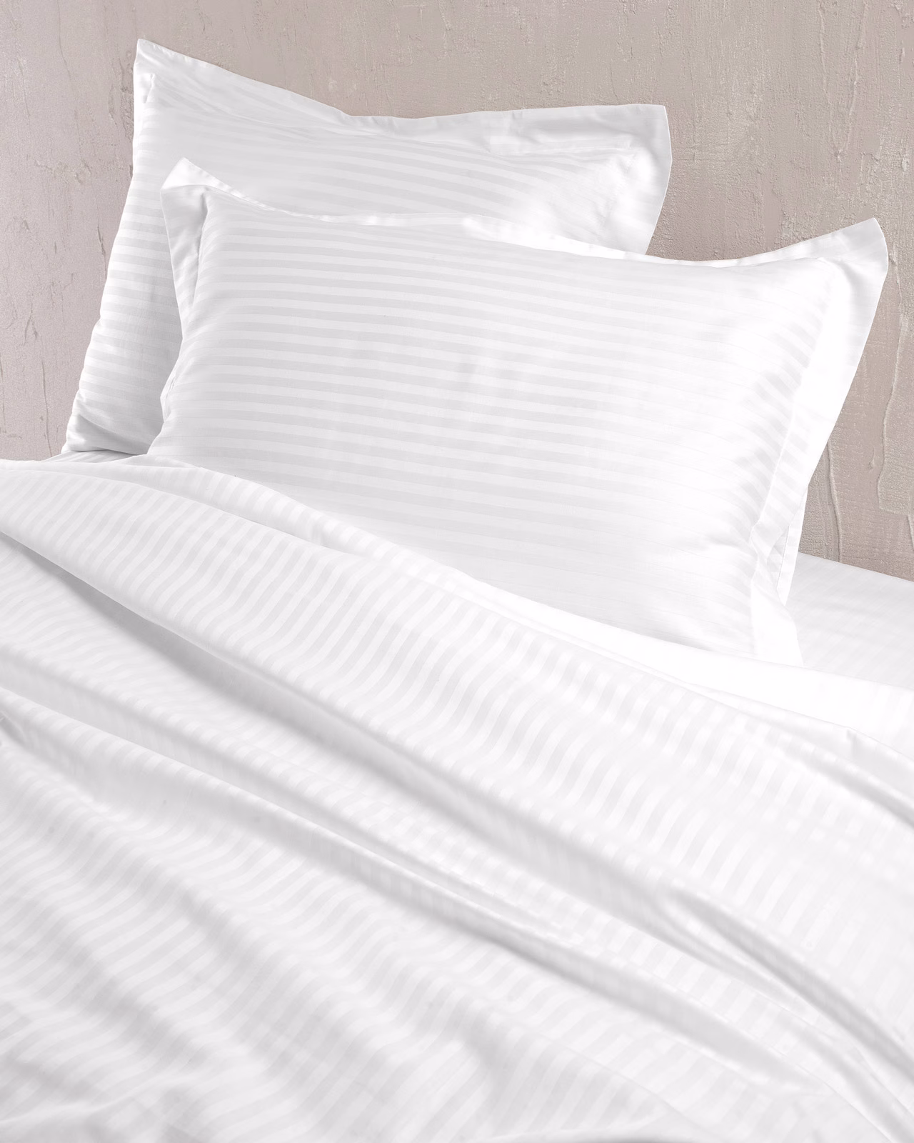 Ζεύγος μαξιλαροθήκες μονόχρωμε λευκές satin stripes φάκελος, διάστασης 50Χ70 με γύρισμα 20 εκατοστά. 240 κλωστές – 60:40 CVC