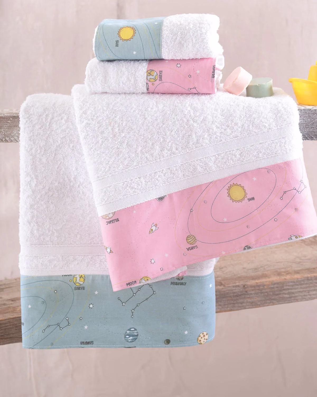 Σετ πετσέτες με φάσα της σειράς Venus. Είναι κατασκευασμένες από 100% βαμβάκι βάρους 450gsm. Το σετ περιλαμβάνει μία πετσέτα χεριών και μία σώματος. Επιτρέπεται το πλύσιμο έως τους 40oC και το σιδέρωμα. Η χρήση του στεγνωτηρίου επιτρέπεται σε χαμηλές θερμοκρασίες. Απαγορεύεται η χρήση χλωρίου ή και λευκαντικού.