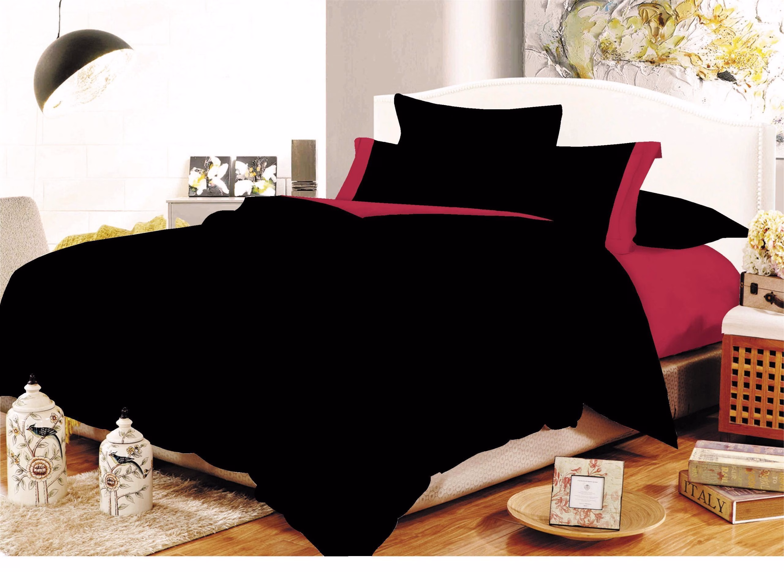 Σετ Σεντόνια ΚΟΜΒΟΣ Cotton Line Black – Red Μονόχρωμα με Φάσα Διπλά 200×240