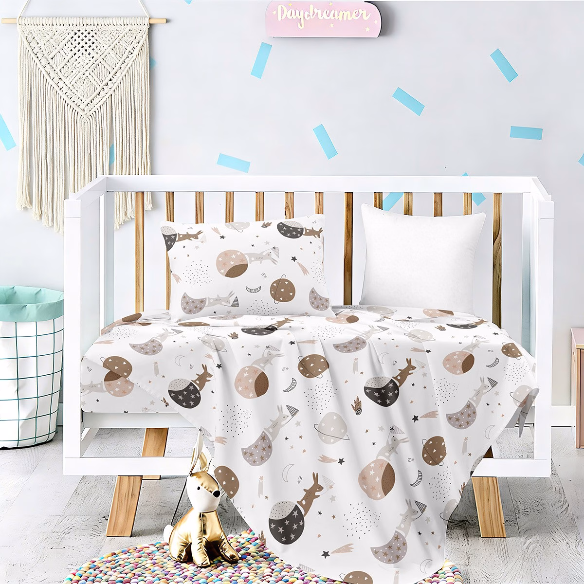 Σετ σεντόνια κούνιας Universe από τη σειρά Prime Line Baby της Melinen! Κατασκευασμένα από 100% βαμβακερό-σατέν ύφασμα 200 κλωστών, έχουν απαλή υφή και λείο φινίρισμα. Αποτελούν ιδανική επιλογή για τον πιο άνετο και υγιεινό ύπνο για κάθε μωρό.