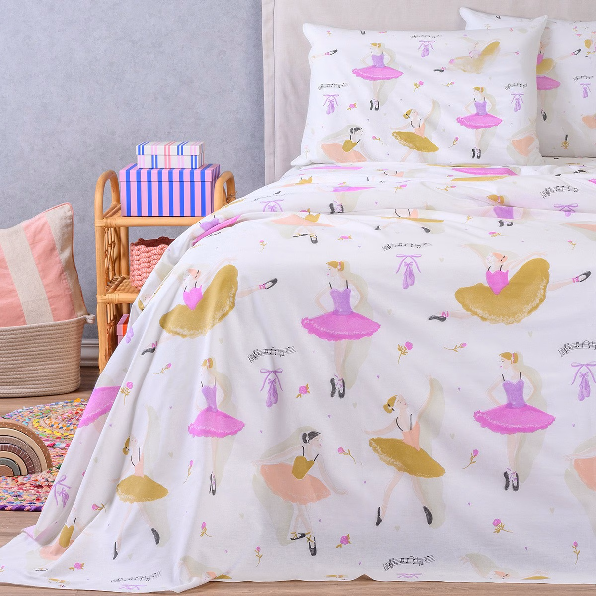 Σετ σεντόνια Dancer με εμπριμέ σχέδιο από τη σειρά Kids Line της Melinen! Κατασκευασμένα από 100% βαμβακερό ύφασμα 144 κλωστών, έχουν απαλή υφή και λείο φινίρισμα. Αποτελούν ιδανική επιλογή για τον πιο άνετο και υγιεινό ύπνο. Διατίθενται με λάστιχο και χωρίς.