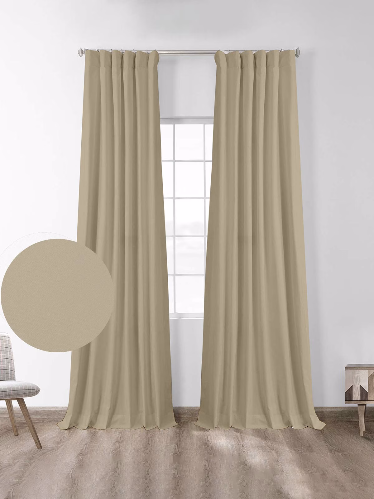 Κουρτίνα blackout πυκνής ύφανσης, αδιαφάνής, ανθεκτική. Εμποδίζει το εξωτερικό φώς, δημιουργώντας πλήρη συσκότιση όποτε το επιθυμείτε. Ιδανική επιλογή για το υπνοδωμάτιό σας, ιδιαίτερα για όσους ενοχλούνται από τις πρωινές ακτίνες του ήλιου.