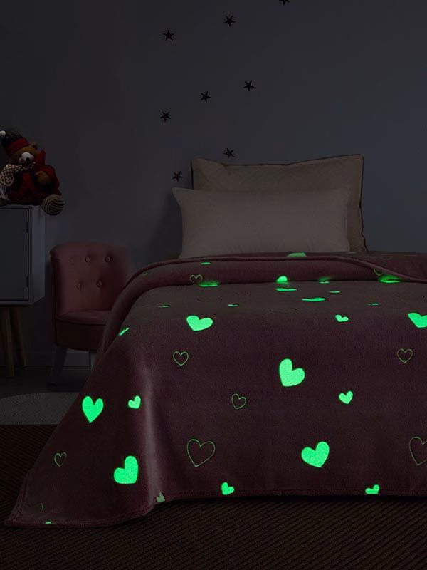 Παιδική κουβέρτα με σχέδιο φωσφοριζέ. Ελαφριά, απαλή και ζεστή σε χαρούμενα χρώματα. Ιδανική για τις χειμωνιάτικες μέρες, αγκαλιάζει το παιδί προσφέροντας ζεστασιά και ασφάλεια για έναν ήρεμο και γλυκό ύπνο.Όσο πιο πολύ εκτεθεί στο φυσικό φως και όσο πιο πολύ είναι το σκοτάδι, τόσο περισσότερο θα φωσφορίζει!