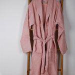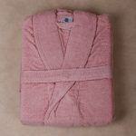 Μπουρνούζι πεννιέ από 100% βαμβάκι. Διατίθεται με γιακά, δυο τσέπες και ζώνη στη μέση. Ιδιαίτερα απαλό και απορροφητικό σε όμορφα χρώματα.
