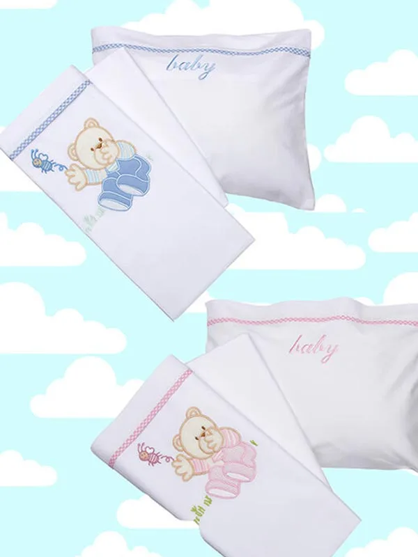 Sunshine Σεντόνια κεντητά κούνιας Bear 04 Blue Κούνιας