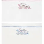 Σετ βρεφικά σεντόνια κούνιας, βαμβακερά 100% σε λευκό χρώμα με κέντημα ζωάκια. Η σύνθεσή τους υπόσχεται απαλότητα στην αφή, ανθεκτικότητα στη χρήση και εύκολια στο σιδέρωμα. Τα όμορφα κεντήματα σε συνδυασμό με το κλασσικό λευκό χρώμα θα ομορφύνουν το δωμάτιο του μωρού σας.